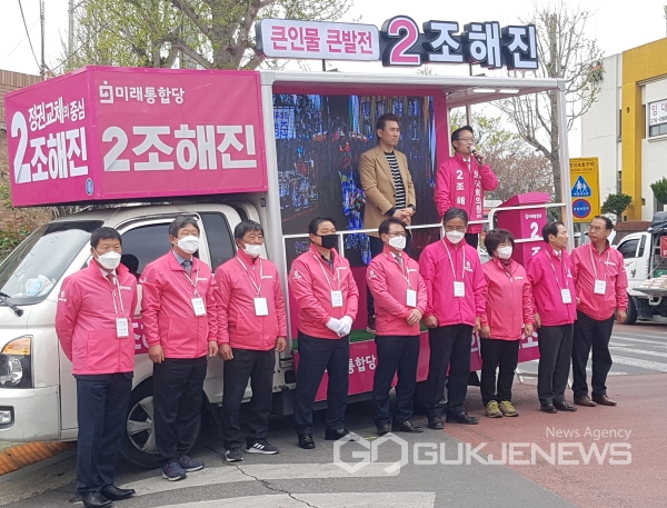 조 후보는 “우리의 할아버지, 할머니, 아버지와 어머니들이 생명을 바치고 청춘을 불살라서 이룬 이 소중한 대한민국, 그 나라를 기필코 다시 살려내고, 세계에 으뜸가는 나라로 만들겠다. 이번 총선은 경제파탄과 안보불안의 폭주를 막는 마지막 기회.“라며 목소리를 높였다.