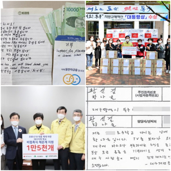 기부를 하게 된 사연 가운데에는 초등학생 남매가 대구에 마스크가 부족하다는 소식을 보고 "대구 사람들이 빨리 건강해지는 날까지 힘내기를 소망합니다"라며 1년 동안 모은 용돈 100만원을 대한적십자사에 기부하기도 했다.