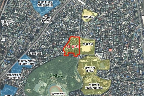해당 지역은 효창공원의 문화재와 인접한 제2종(7층)일반주거지역인 1만8,256㎡의 경사지로서 용적률 216%, 최고 14층이하 아파트 7개동으로 임대주택 64가구를 포함한 373가구를 건립하고, 공공문화체육시설을 변경하는 계획안을 상정하여 위원회에서는 체육시설에 대한 소음문제, 단지경사로, 학교통학로, 우수저류시설 등의 세부계획을 수립하는 조건으로 통과 시켰다.