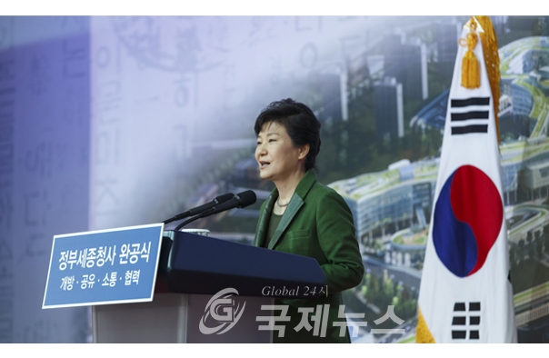 박 대통령은 "우리나라는 오랜 기간 국가의 기능과 자원, 인구가 수도권 중심으로 치중돼 왔다"며 "이런 국토의 불균형을 해소하고 전국이 골고루 발전하기를 바라는 꿈이 집약된 도시가 바로 이곳 세종시"라고 말했다.