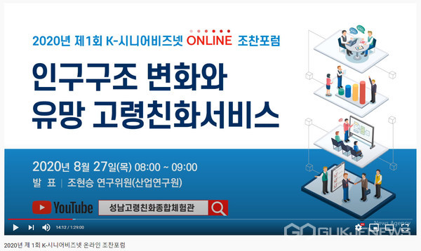 (성남=국제뉴스) 이형노 기자 = 성남 고령친화종합체험관(관장 김규호, 이하 체험관)은 27일(목) 오전 8시 고령친화산업 산·학·연·관 관계자들이 참석한 가운데 비대면 온라인 생중계 방식으로 ‘2020년 제1회 조찬포럼’을 개최했다.