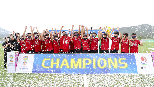 (경남 합천=국제뉴스) 이종필 기자 = 고교축구 유망주 산실인 제56회 춘계 한국고등학교축구연맹전이 경기 부천FC1995 U-18의 우승으로 12일간의 열전을 마무리했다.