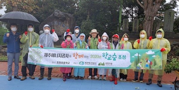 (제주=국제뉴스) 문서현 기자 = 제주에너지공사(사장 황우현, 이하 ‘공사’라 함)는 제주생명의숲국민운동과 함께 지난 17일 조천초등학교에서 학교 숲 조성 사업을 추진했다고 밝혔다.