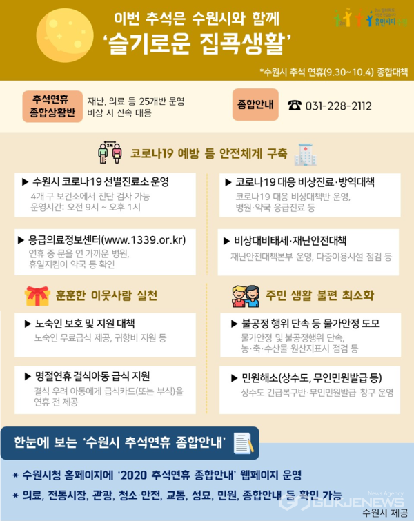 수원시, 2020 추석연휴 종합대책 마련…비상진료체계 및 개방 시설 확인 필요