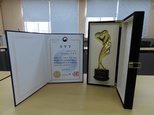 고영국 행정실장은 30여 년 동안 정기적으로 헌혈 봉사 (총 434회)를 실시해 백혈병, 심장병 등 환우들을 위해 꾸준히 헌혈증을 제공하는 등 생명나눔 봉사에 지속적·적극적으로 공헌한 바가 남달라, ‘2020년 대한민국 나눔 대상 생명나눔’부문 수상자로 선정됐다