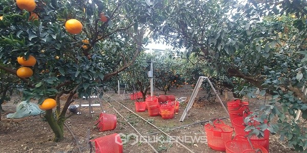 3농가 중 1농가는 이미 대부분의 천혜향을 수확하여 선과장에 판매한 상태였으며 2농가는 한창 천혜향을 수확하고 있는 상황이었다.