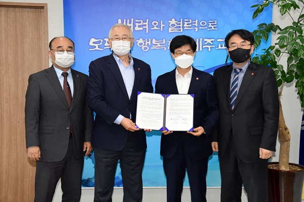 (제주=국제뉴스) 문서현 기자 = 제주도교육청(교육감 이석문)과 제주도사회복지협의회(회장 고승화)는 지난 16일 불가피하게 학사일정이 변경되면서 폐기되는 학교급식 식재료를 소외계층에게 지원될 수 있도록 업무협약을 체결했다.