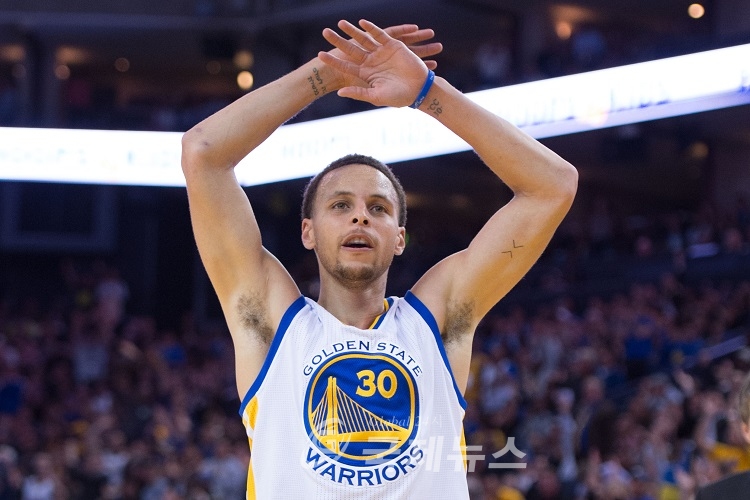 March 23, 2015; Oakland, CA, USA; Golden State Warriors guard Stephen Curry (30) celebrates against the Washington Wizards during the third quarter at Oracle Arena. The Warriors defeated the Wizards 107-76. Mandatory Credit: Kyle Terada-USA TODAY Sports