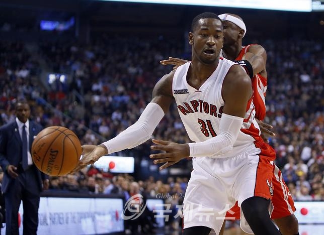 Mar 30, 2015; Toronto, Ontario, CAN; Toronto Raptors forward Terrence Ross (31) passes off the ball against the Houston Rockets at the Air Canada Centre. Toronto defeated Houston 99-96. Mandatory Credit: John E. Sokolowski-USA TODAY Sports