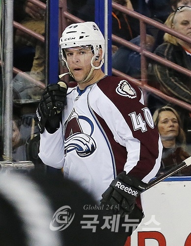 Mar 25, 2015; Edmonton, Alberta, CAN; Colorado Avalanche forward Alex Tanguay (40) celebrates a second period goal against the Edmonton Oilers at Rexall Place. Mandatory Credit: Perry Nelson-USA TODAY Sports