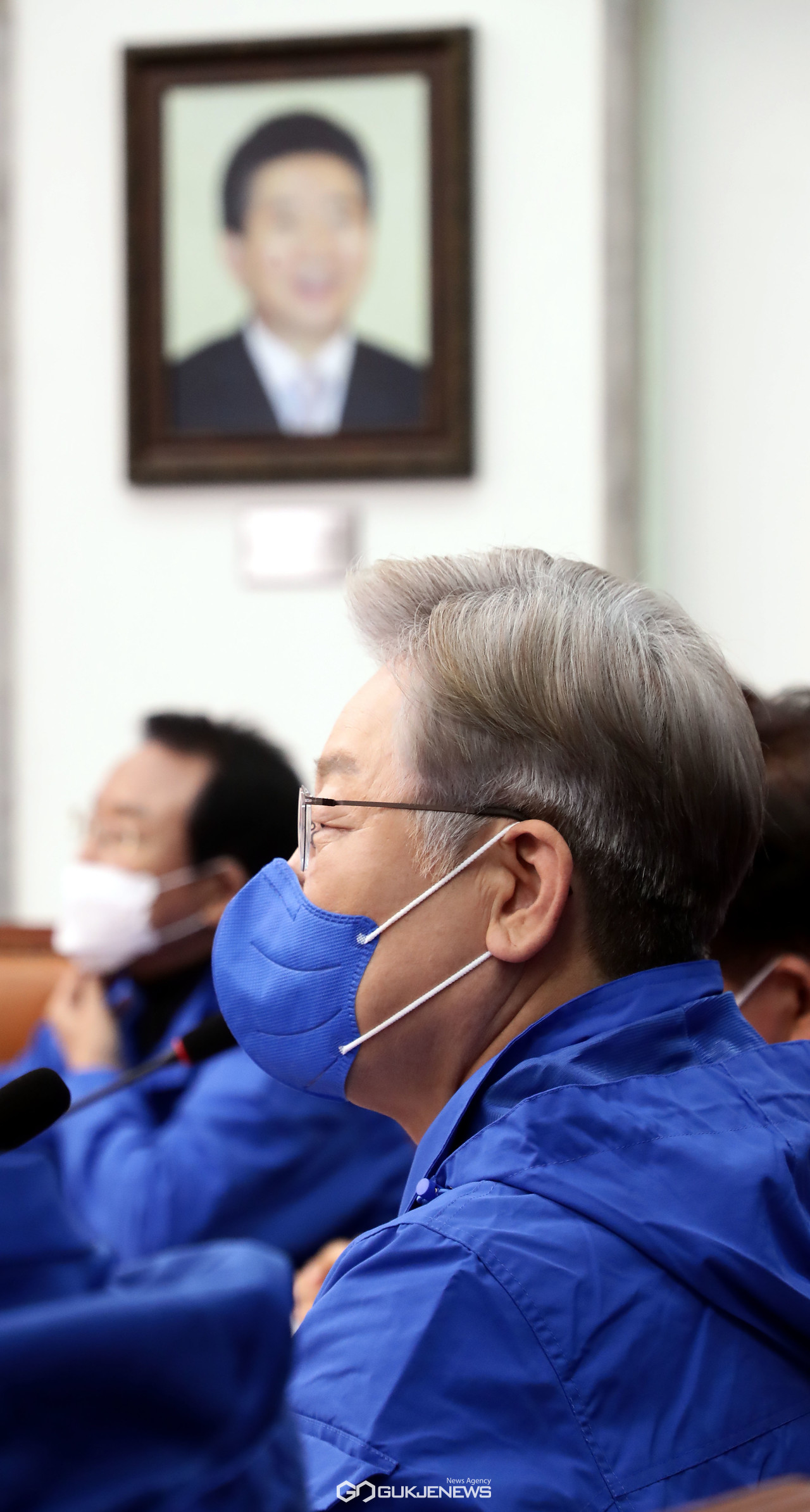 (서울=국제뉴스) 이재명 더불어민주당 대선후보가 3일 서울 여의도 국회에서 열린 중앙선거대책위원회의에서 발언하고 있다./사진=이용우기자
