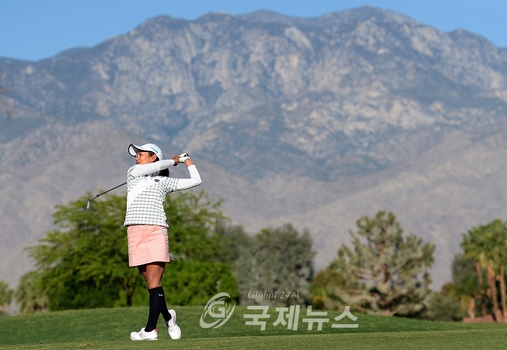 Apr 3, 2015; Rancho Mirage, CA, USA; Ai Miyazato tees plays her third shot on the second hole during the second round of the ANA Inspiration at Mission Hills CC - Dinah Shore Tournament Course. Mandatory Credit: Jake Roth-USA TODAY Sports