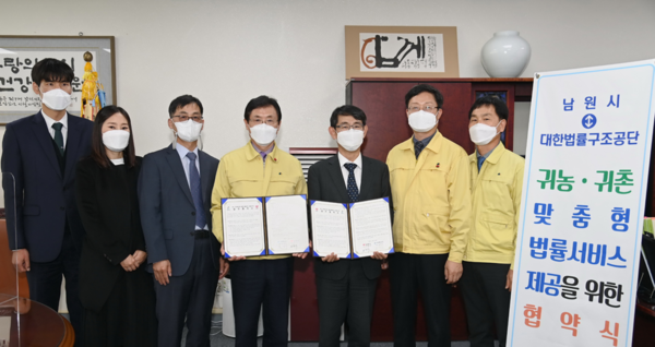 이에 남원시는 귀농·귀촌인에게 법률적 도움을 주고자 대한법률구조공단과 협약을 체결하게 되었으며, 이번 협약을 통해 법을 잘 몰라 법의 보호를 받지 못한 귀농·귀촌인은 법률교육 및 상담 등 법률서비스를 쉽고 편하게 받을 수 있게 됐다.
