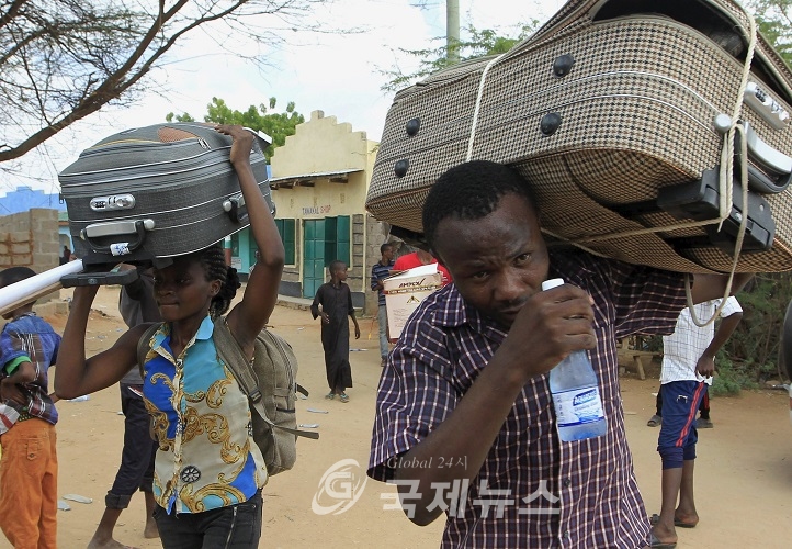 Garissa University students carry their belongings as they leave for destinations out of Garissa after Thursday's attack by gunmen in their campus, in Garissa April 4, 2015. The death toll in an assault by Somali militants on Garissa University College is likely to climb above 147, a government source and media said on Friday, as anger grew among local residents over what they say as a government failure to prevent bloodshed. REUTERS/Noor Khamis