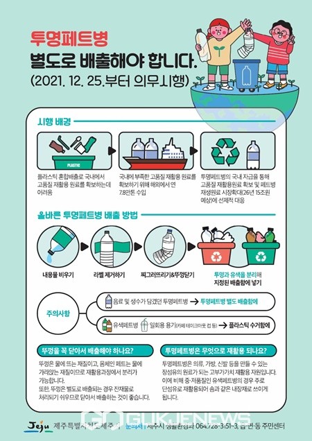 (제주=국제뉴스) 문서현 기자 =제주시가 오는 25일부터 공동주택 외에 단독주택 등에서도 투명페트병 별도배출이 의무시행한다.