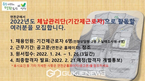 (연천=국제뉴스) 이운안 기자 = 연천군은 맞춤형 체납징수와 생계형 체납자의 복지연계를 추진하기 위한 체납관리단을 모집한다고 19일 밝혔다.