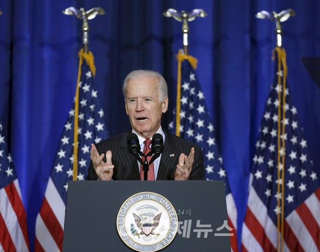 United States Vice President Joe Biden delivers his speech on U.S policy in Iraq at the National Defense University at Fort McNair in Washington April 9, 2015. The Islamic State brought Iraqi leaders together in a common fight since the militant group declared a "caliphate" innorthern Iraq last summer, Biden said on Thursday. REUTERS/Gary Cameron