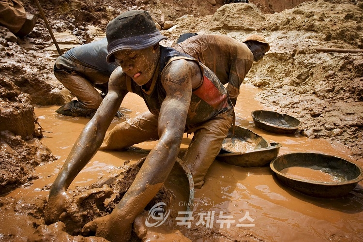 A gold miner scoops mud while digging an open pit at the Chudja mine in the Kilomoto concession near the village of Kobu in this February 23, 2009 file photo. European importers of minerals from conflict zones should be forced to certify their goods "blood-free," an influential group of EU lawmakers said on April 14, 2015, seeking to toughen a proposal to prevent the financing of warlords in Africa. Much of the gold, tantalum, tin and tungsten used in electronics and lighting is mined in areas of civil conflict in Africa and the European Commission, the EU executive, last year presented a plan for a voluntary certification scheme. REUTERS/Finbarr O'Reilly/Files