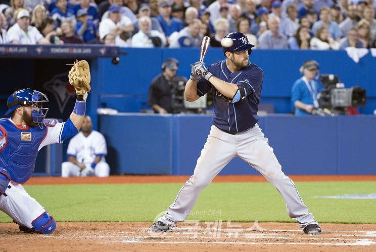Apr 13, 2015; Toronto, Ontario, CAN; Tampa Bay Rays right fielder Steven Souza (20) takes an RBI walk during the fourth inning in the Toronto Blue Jays home opener at Rogers Centre. The Tampa Bay Rays won 2-1. Mandatory Credit: Nick Turchiaro-USA TODAY Sports