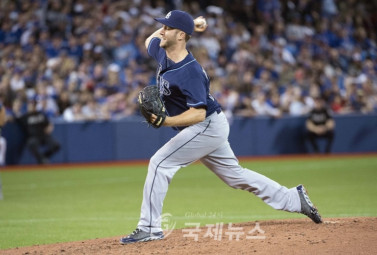 Apr 13, 2015; Toronto, Ontario, CAN; Tampa Bay Rays relief pitcher Brad Boxberger (26) throws a pitch during the ninth inning in the Toronto Blue Jays home opener at Rogers Centre. The Tampa Bay Rays won 2-1. Mandatory Credit: Nick Turchiaro-USA TODAY Sports