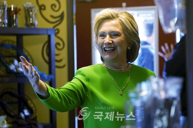 Former U.S. Secretary of State Hillary Clinton talks with local residents as she campaigns at the Jones Street Java House in LeClaire, Iowa April 14, 2015. Clinton will announce her second run for the presidency on Sunday, starting her campaign as the Democrats' best hope of fending off a crowded field of lesser-known Republican rivals and retaining the White House. REUTERS/Rick Wilking