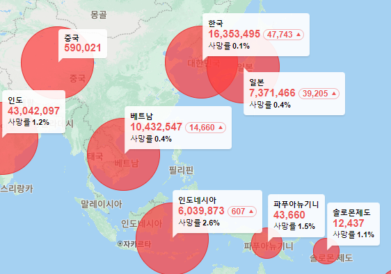 18일 오후 2시 집계 기준 전 세계 코로나 확진자 현황을 다음과 같다.