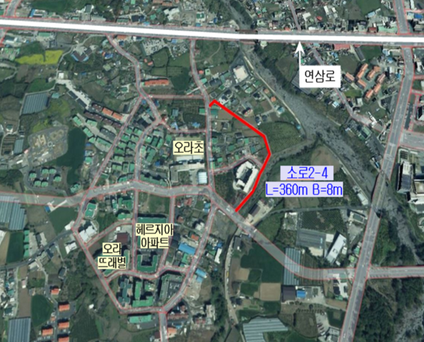 20일 제주시에 따르면 오라동 주거지역 내 원활한 교통편의 제공을 위해 ‘오라주거지역 경계(소로2-4) 도로개설사업’을 본격 착수했다고 밝혔다.