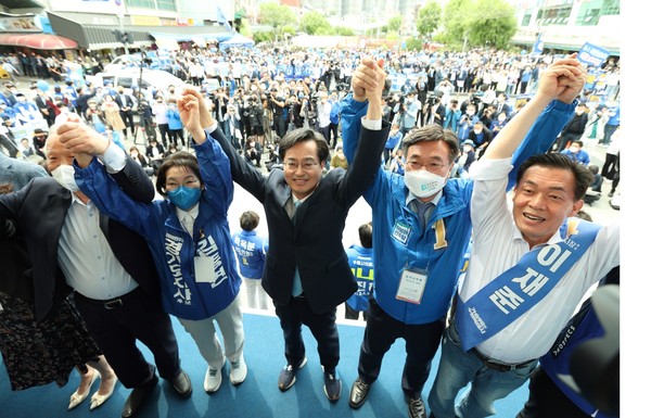 김 후보는 “지난 2개월 동안 윤석열 정부의 독선과 오만과 폭주를 똑똑히 지켜봤다”며 “경기도 선거에서 이겨야지 윤석열 정부의 오만과 폭주를 견제하는, 전국 지방선거에서의 승리를 이끌 수 있다”며 지지를 호소했다.