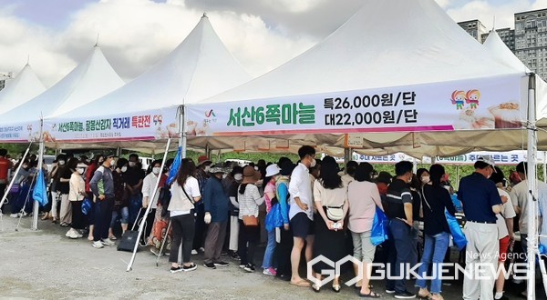 (서산=국제뉴스) 최병민 기자 = 충남 서산시가 지난 2~3일 서산중앙호수공원 주차장에서 연 서산6쪽마늘·감자 특판전에서 5천여만 원의 판매 성과를 올렸다.
