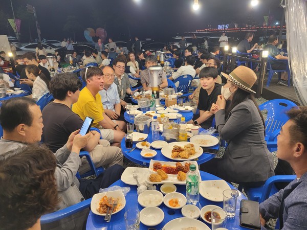 - 이 대표, 당원·지지자, 포항시민들과 송도서 `치맥 번개 모임`
