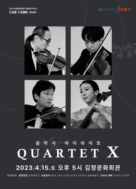 (제주=국제뉴스) 문서현 기자 = 제주시는 김정문화회관 기획공연 시리즈 '토요일 토요일은 클래식' 두 번째 공연으로 조윤범의 콰르텟 엑스의 '음악사 하이라이트'를 오는 15일 토요일 오후 5시에 김정문화회관 공연장에서 개최한다.
