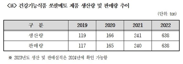 쏘팔메토 제품 국내 제조 판매량 ’19년 117톤 → ’22년 638톤 445% 증가
