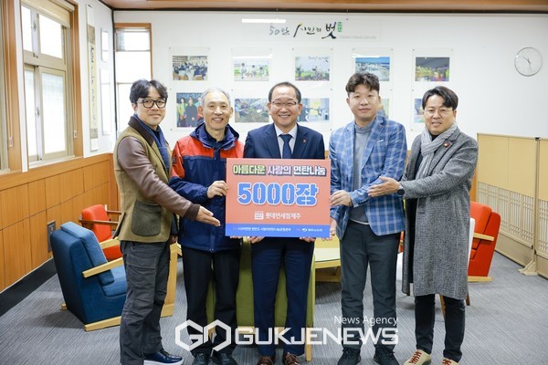 이날 사랑의 연탄 전달식은 (사)따뜻한 한반도 사랑의 연탄나눔본부 사무총장 원기준 목사, 제주의소리 김봉현 이사, 롯데면세점 이상철 점장 등이 참석한 가운데 진행됐다.