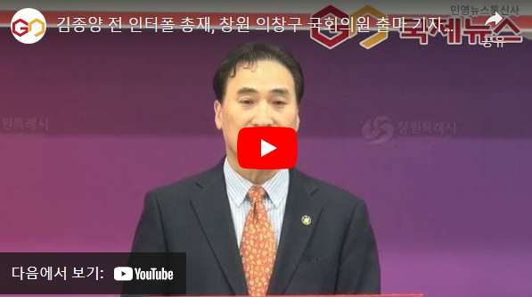 (창원=국제뉴스)김종양 전 인터폴 총재가 내년 2024년 4월 치르지는 제22대 국회의원 선거에서 창원시 의창구 지역 출마를 위해 예비후보로 등록한 데 이어 지난 13일 오후 창원시청 브리핑룸에서 출마기자 회견을 통해 출마를 선언했다./영상=이진화 기자