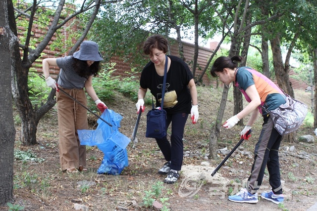 ▲ 25일 오후 수원시 장안구 정자3동주민자치위원회, 통장협의회 회원, 동주민센터 직원들이 국토대청소를 펼친 가운데 천천동의 한 주택가 화단에서 주민들이 무단 투기된 오물을 제거하고 있다.(사진=국제뉴스 유성열 기자)
