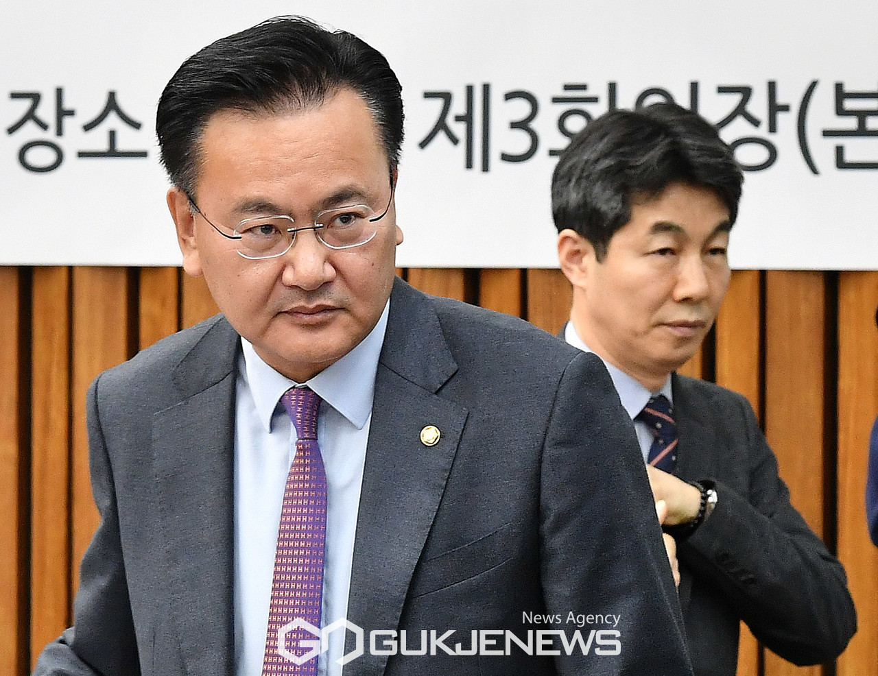 (서울=국제뉴스) 국회 정보위원회 여당 간사인 유상범 의원과 야당 간사인 윤건영 의원이 11일 오전 서울 여의도 국회에서 열린 조태용 국가정보원장 후보자에 대한 인사청문회에서 조 후보자의 자료제출 관련 논의를 위해 청문회장을 나서고 있다./사진=이용우기자