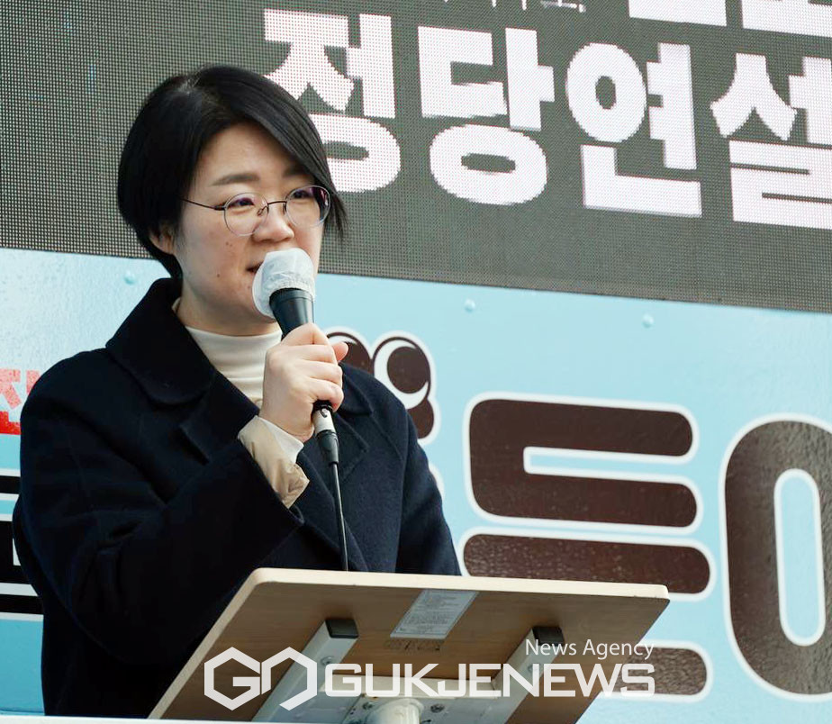 (서울=국제뉴스) 진보당 윤희숙 상임대표가 27일 오후 광화문에서 열린 거부권 정치,공포정치,윤석열 독재 심판! 민주주의 수호! 진보당 정당연설회에서 발언 하고 있다./사진=이용우기자