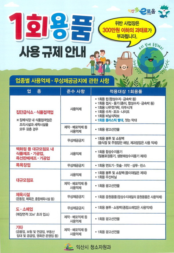 한편 익산시는 지난 29일 설 명절을 맞아 과대 포장으로 인한 불필요한 자원 낭비를 줄이기 위해 대형마트를 대상으로 전북특별자치도, 한국환경공단과 함께 합동 지도 점검을 실시했다.