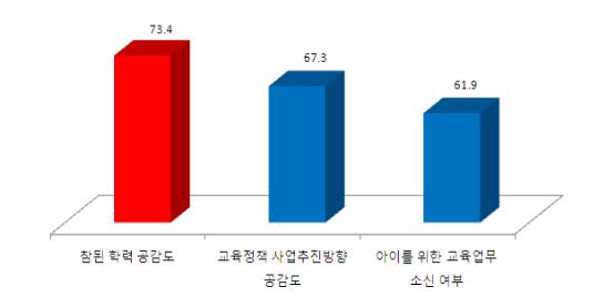 참된 학력에 대한 공감도(73.4%), 교육감 소신 있는 일 추진(61.9%)