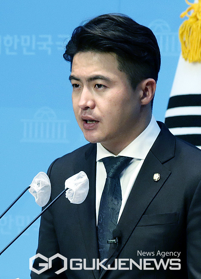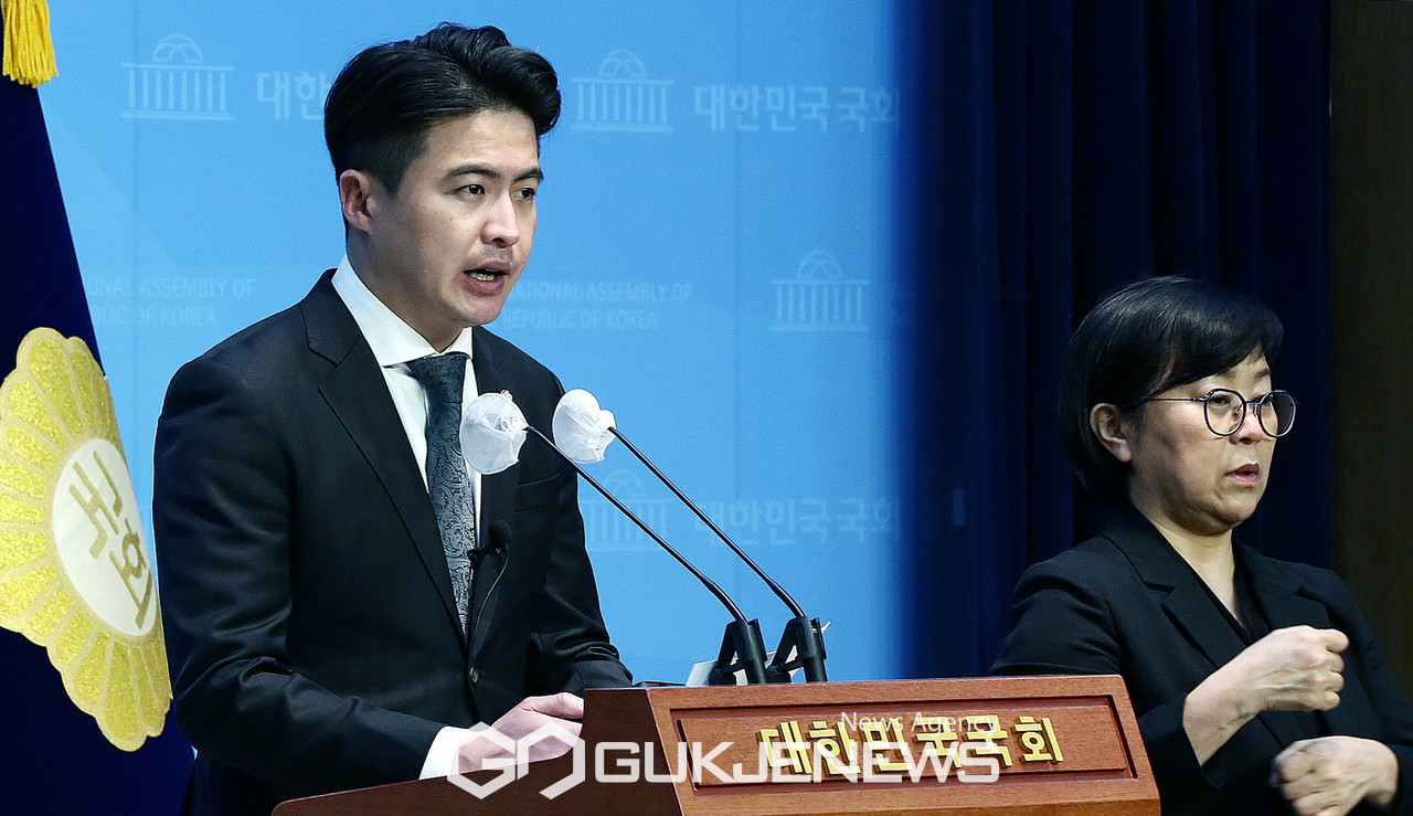 (서울=국제뉴스) 새로운미래 오영환 총괄선대위원장이 21일 오전 국회 소통관에서 22대 총선 새로운 미래 '미래준비' 공약 발표 기자회견을 하고 있다. /사진=이용우기자