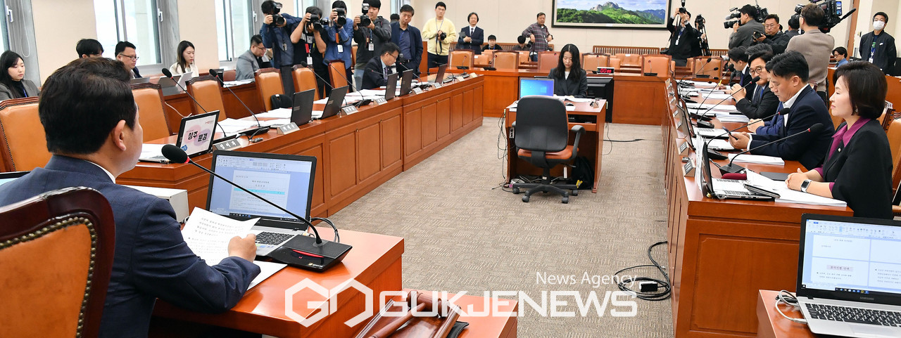 (서울=국제뉴스) 박정 국회 환노위 위원장이 7일 서울 여의도 국회에서 열린 환경노동위원회 전체회의를 주재하고 있다. 이날 국민의힘 환노위 의원들은 지난 2일 민주당 주도로 채상병 특검을 처리한 것에 대한 항의 차원에서 보이콧을 했다./사진=이용우기자