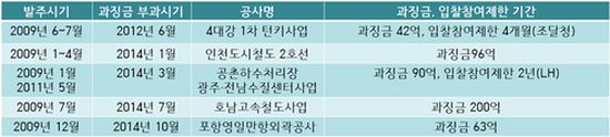 지난 2009년 1월 발주된 인천도시철도 2호선 건설공사 입찰과정에서도 담합행위가 적발돼 지난해 1월 공정위로부터 96억원의 과징금을 받았다.