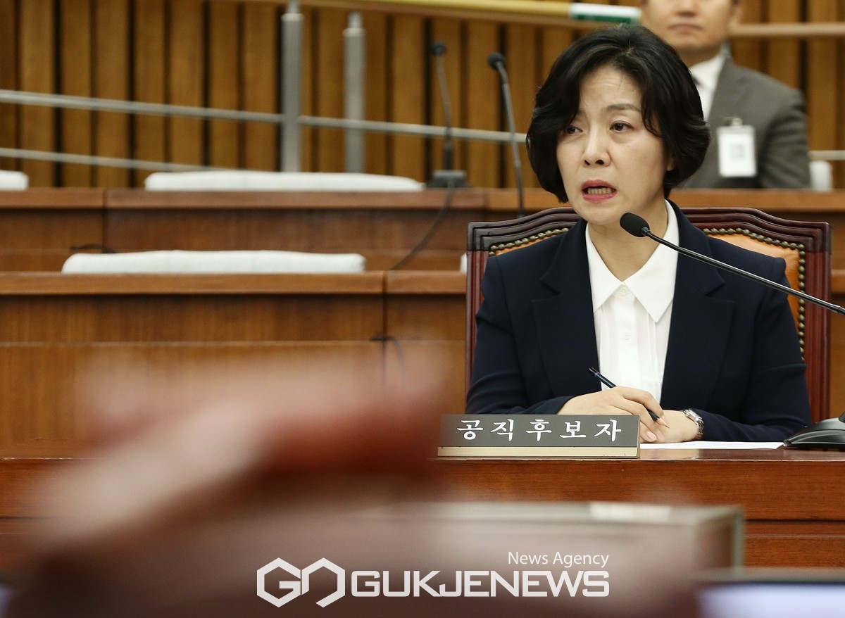 (서울=국제뉴스) 이숙연 대법관 후보자가 25일 서울 여의도 국회에서 열린 국회 인사청문특별위원회 인사청문회에서 질의에 답변하고 있다. /사진=원명국 기자
