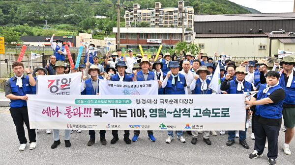 (정선=국제뉴스) 서융은 기자 = 정선군(군수 최승준)은 영월~삼척 고속도로의 예비타당성 조사를 통과시키기 위한 군민들의 염원을 담아 국토순례 대장정에 동참했다. 이번 국토순례는 영월, 정선, 태백, 삼척을 직접 걸어서 이동하며 고속도로 건설의 필요성을 직접적으로 알리기 위해 기획되었다.