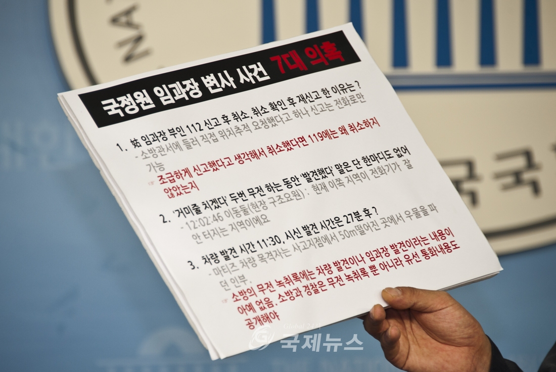 이날 정의원은 국정원과 경찰에 임모과장이 집을 나서서 자살할때 까지의 CCTV자료를 요구했다.