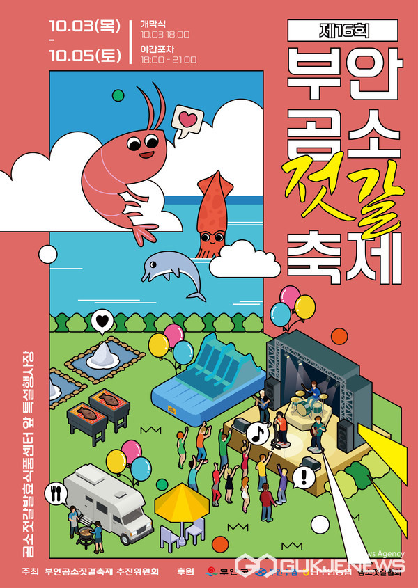 (부안= 국제뉴스) 조판철 기자 = 전국에서 젓갈의 명산지로 꼽히는 부안 곰소에서 제16회 부안곰소젓갈축제가 오는 10월 3일부터 5일까지 3일간 열린다.