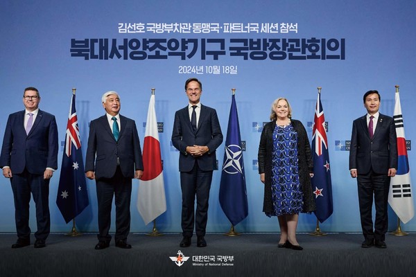 (서울=국제뉴스) 최윤제 기자 = 국방부는 김선호 국방부차관이 10월 17일 (목)(현지시각) 벨기에 브뤼셀에서 개최된 북대서양조약기구 (NATO, North Atlantic Treaty Organization) 국방장관회의 동맹국·파트너국 세션에 참석하였으며, 이번 회의에는 NATO 32개 동맹국과 인태 파트너 4개국 (IP4) 대표 및 EU 대표가 참석하여 현 안보상황 평가, 우크라이나 문제, 러북 군사협력 등 유럽·대서양과 인도·태평양 지역의 안보 현안에 대해 논의하였다고 밝혔다. 마르크 뤼터 NATO 사무총장 주재로 개최된 NATO+IP4+EU 세션은 참가자들이 NATO와 IP4 및 EU의 협력방안에 대해 의견을 개진하며 2시간 30분 동안 진행되었다.