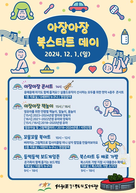 (제주=국제뉴스) 문서현 기자 =서귀포기적의도서관이 북스타트 행사 ‘아장아장 북스타트 데이’를 12월 1일 개최한다.
