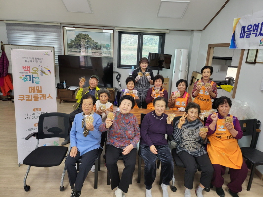 ▲용평 백옥마을(이장 김진봉)은 쿠킹 클래스 과정을 통해 마을의 특산물인 메밀가루를 적극 활용한 메밀 쿠키, 메밀 컵케이크를 만들었으며, 마을 로고를 담은 스티커로 포장하여 마을 브랜드를 홍보했다.