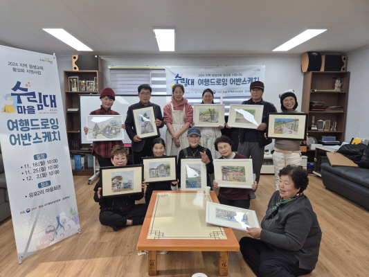 ▲봉평 수림대마을(이장 연시권)은 마을 풍경을 담아내는 어반스케치 과정을 통해 수려한 자연을 강점으로 내세우는 마을의 이미지를 완성하였으며, 지난 20일 주민과 관계자 등 80여 명이 모이는 마을총회에서 작품전시회를 선보이며 마을 브랜드 알리기에 힘썼다.